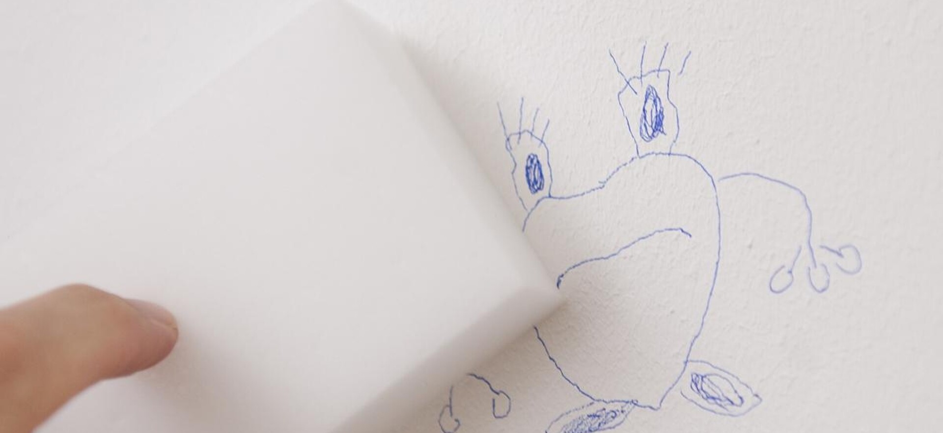 Die sollten in keinem Haushalt fehlen: Schmutzradierer aus gehärtetem Melaminharz. Sie eliminieren selbst hartnäckige Flecken wie Kugelschreiber auf weißer Wand oder auf (Kunst-) Leder. Auch Fugen lassen sich damit wieder weiß rubbeln. Und das ganz ohne Chemie, denn Schmutzradierer sind sogenannte abrasive Reiniger; sie reinigen per „Mikroscheuern“. Deshalb sollten Sie die Prozedur vorher immer an einer nicht sichtbaren Stelle testen, keinesfalls an den Fronten einer Hochglanzküche - der Lack ist dann definitiv ab!