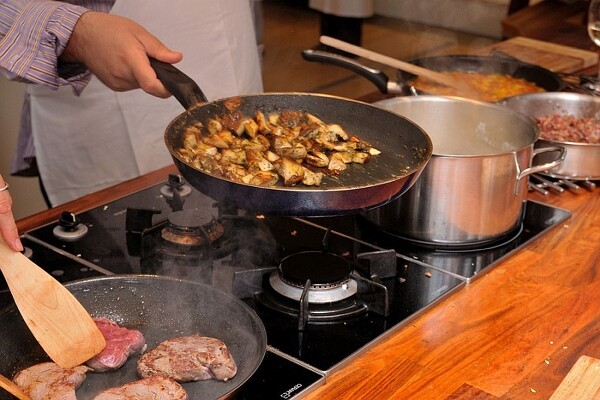 „Braten Sie das Fleisch rundherum scharf an …" – Wenn man so etwas liest, weiß man schon, dass das Spülen danach etwas aufwändiger wird. Kommen Sie deshalb aber nicht auf die Idee, sich diese Mühen zu ersparen, indem Sie eine beschichtete Pfanne verwenden. Sie eignet sich nämlich nicht, um schöne Röstaromen und Krusten zu bilden. Diese Krustenbildung verhindert auch das Austreten von Flüssigkeit. In einer beschichteten Pfanne schwimmen Lebensmittel daher schnell im eigenen Saft.